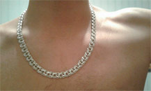 Full-fledged silver chain around the neck.