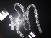 Серебряная мужская цепочка Бисмарк 45 грамм с крестом